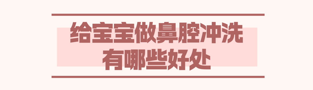 宝宝比成人更容易出现鼻塞等症状,是因为宝宝鼻黏膜内血管相对成人更丰富,寒冷空气刺激或病原体侵犯后引起炎症,鼻黏膜充血肿胀,鼻腔内分泌物增加,加上宝宝自己又不会清理,从而出现一系列症状。因此,及时清理鼻腔、保持通畅至关重要。给宝宝做鼻腔冲洗的好处如下: