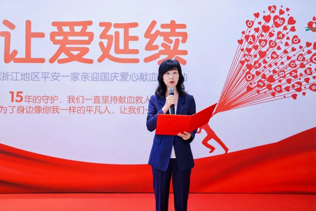 为了庆祝新中国成立75周年,弘扬“爱与责任”的慈善文化,倡导“人道、博爱、奉献”的公益精神,9月29日上午,2024年“让爱延续”中国平安浙江地区爱心献血周活动温暖再出发,在杭州平安金融中心圆满举行中国平安迎国庆献热血15周年启动仪式。中国平安人寿浙江分公司副总经理兼工会主席谢娟,浙江省血液中心党委委员、副主任潘凌凌等领导出席活动,来自中国平安志愿者协会浙江地区分会的志愿者们近百人余参加本次活动。