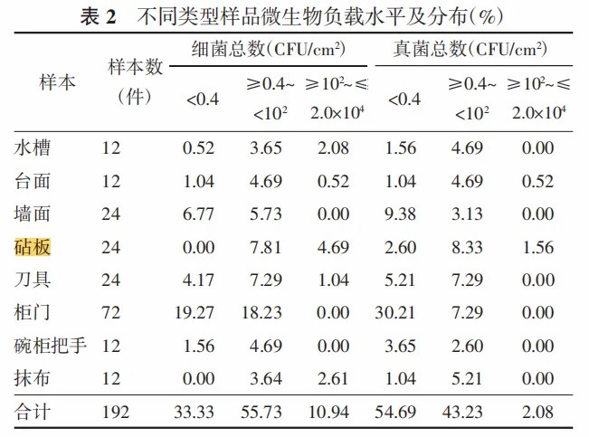 2023 年 3 月发表在《环境与健康杂志》上的一篇关于家庭厨房环境细菌和真菌群落及多样性调查采集了 6 个家庭厨房的水槽、台面、墙面、砧板、刀具、柜门、碗柜把手和抹布 8 个位点的样本进行检测分析。结果发现,砧板的微生物污染水平最高,检测出了蜡样芽孢杆菌、溶血性葡萄球菌、黑曲霉等多种致病菌。[16]