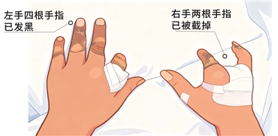 不到两年10根脚趾都被切除 10根手指也已发黄发黑