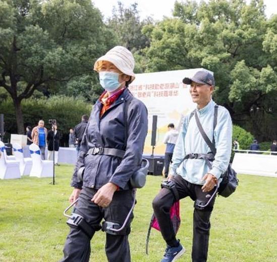 “好久没爬山了,今天在外力的帮助下,山路走得很轻松。”今年70岁的杭州市民蔡宝珍高兴地说。她口中的“外力”,是一套外骨骼设备,由一个“束腰”和一对“护膝”组成,“束腰”两侧各有一个电机,为老年人“迈开腿”提供助力。