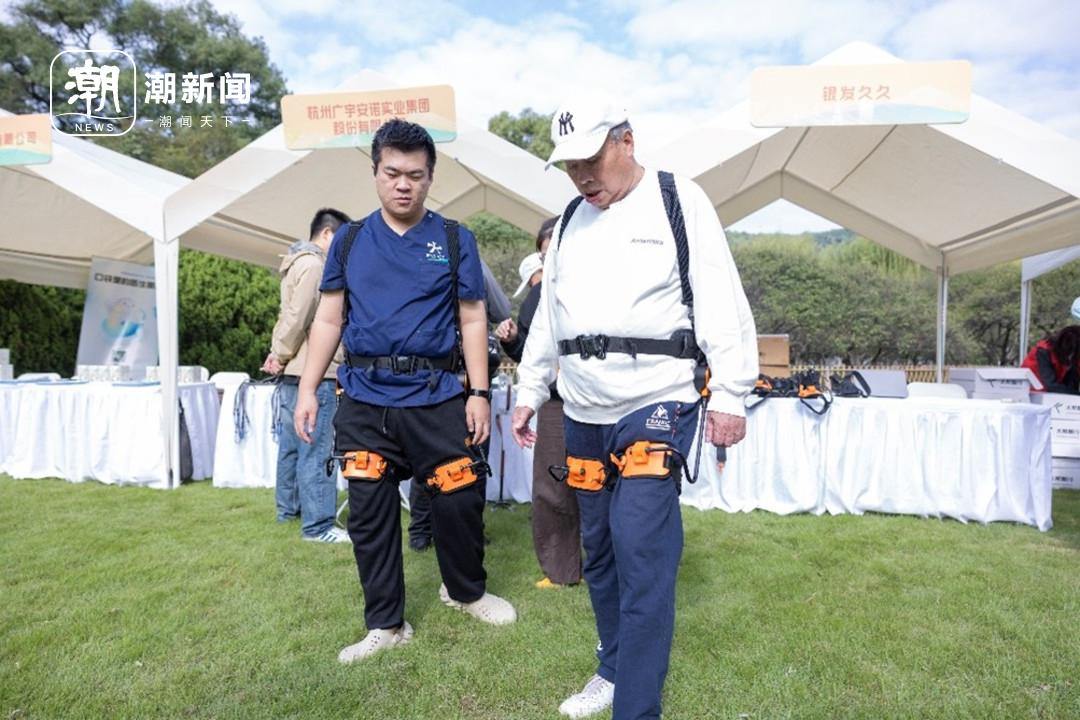在杭州,科技正融入银发生活。10月24日,2025年浙江省“科技助老游湖山”暨杭州市“敬老月”科技嘉年华活动在杭州举行。在外骨骼机器人体验环节,50多位老年人穿戴好设备,体验“登山览胜”与“沿湖寻景”两大场景。