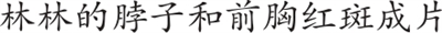 可没过两天,林林脖子上的“红疹”就迅速加重了:皮肤摸上去又粗又糙,红疹变成了一块块的红斑,还蔓延到前胸后背。林林不停喊痒,说疼。