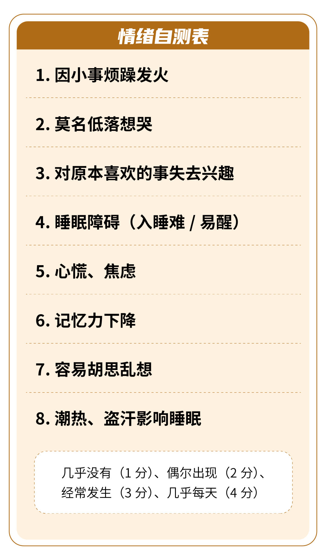下面这个“情绪自测表”可以帮助你判断当前情绪状态: