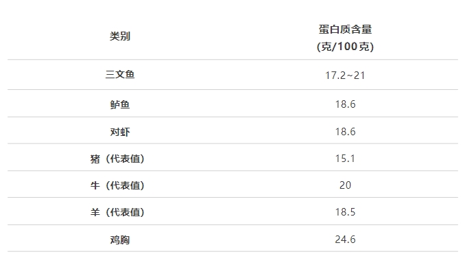 三文鱼蛋白质含量可达21克/ 100克,和牛肉相当,高于猪肉、羊肉等畜肉和淡水鱼虾。鸡胸肉蛋白质含量虽比三文鱼稍高,但口感远不如三文鱼,这一点健身的朋友应该深有感触。