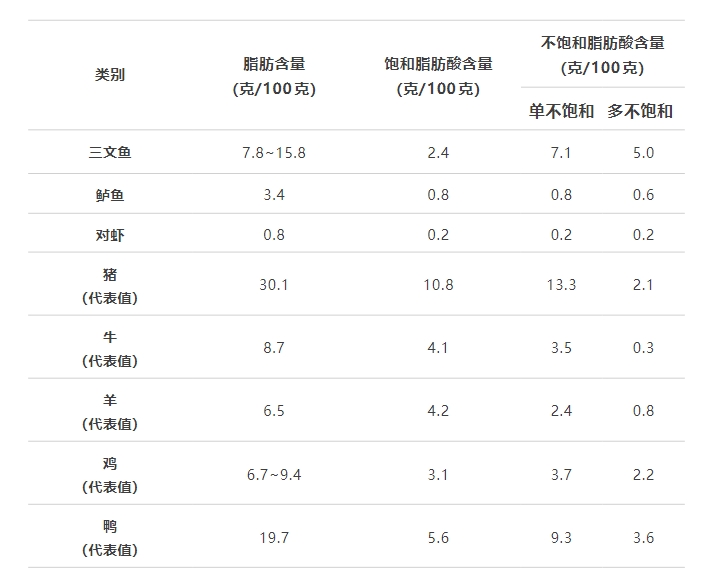 表2 三文鱼和其他肉类营养成分含量对比 注:数据来自《中国食物成分表》第六版等