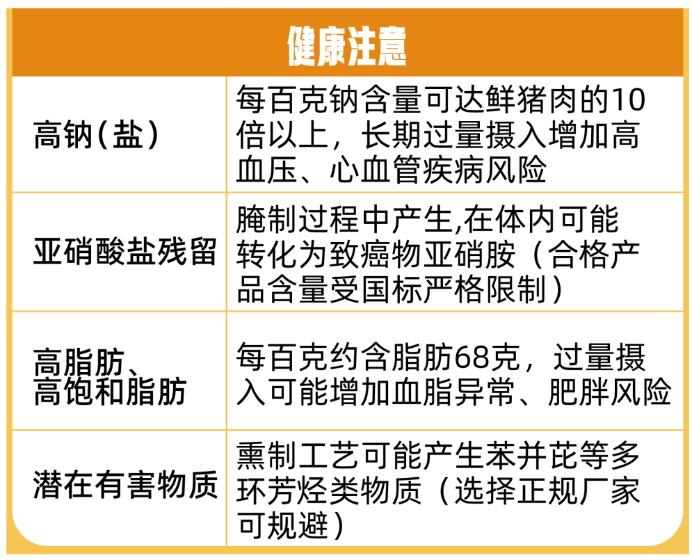 ▶孕妇、儿童:建议选择低盐自制腊肉,每月食用不超过2次,且需彻底煮熟;