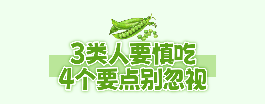豌豆含低聚糖和粗纤维,过量食用易产气腹胀,消化不良、慢性肠炎人群,每次食用别超过50克。